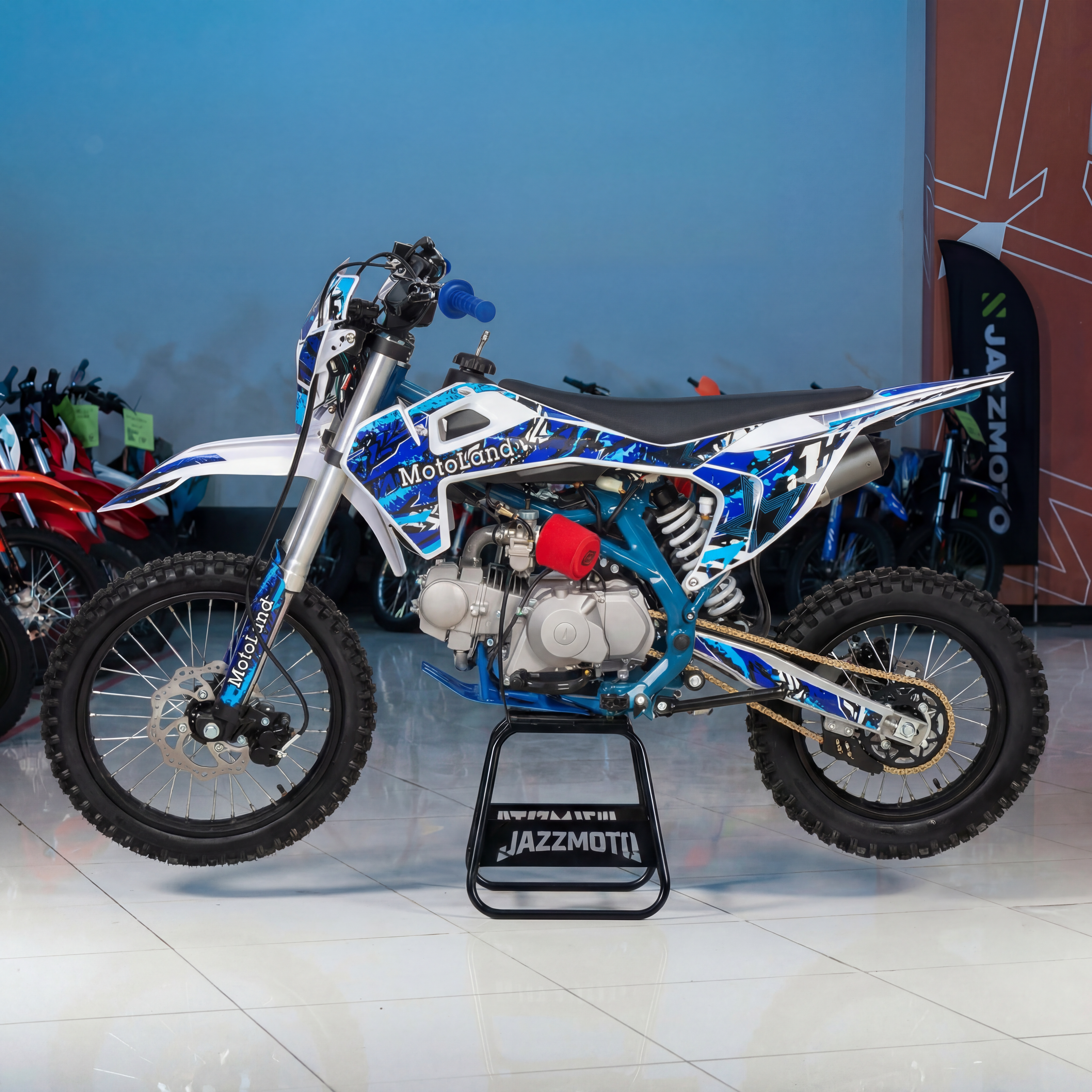 Питбайк Motoland TCX125 E 17/14 NEW — идеален для поездок по грунтовым дорогам и бездорожью. Модель хорошо чувствует себя на мягком и среднем грунте, разгоняется до 90 км/ч и при этом весит всего 75 кг, что делает её удобной в управлении и эксплуатации. Питбайк прост в управлении, не требует специального ухода, подойдёт как новичкам, так и любителям мотокросса. Отдельного внимания заслуживает отличный узнаваемый дизайн и комбинированный прочный пластик, который не ломается при сгибании.