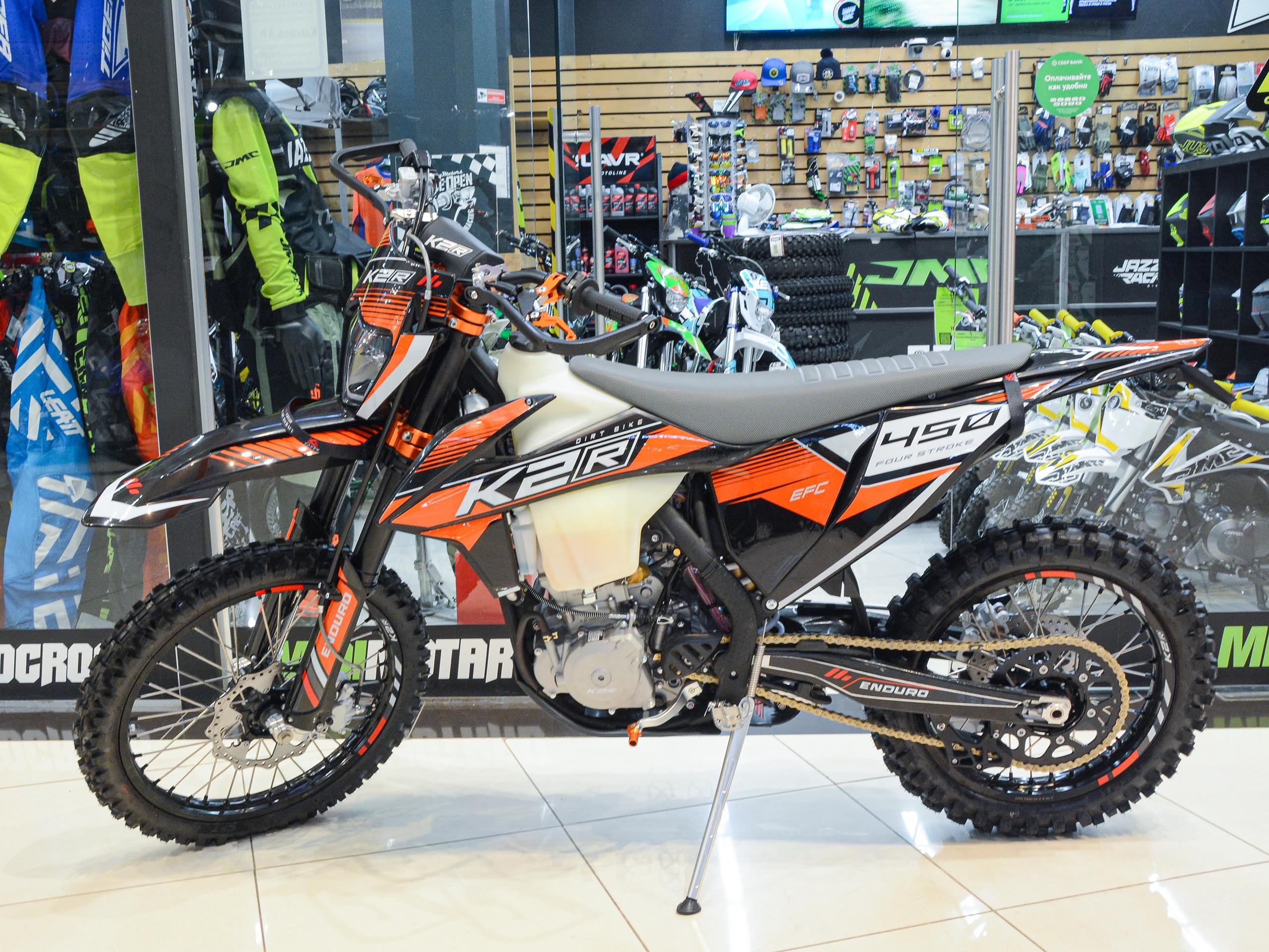 Мотоцикл K2R 450 EFC является одним из самых мощных в линейке производителя. Резвый, выносливый и оптимально сбалансированный байк подарит массу положительных впечатлений на любой трассе.